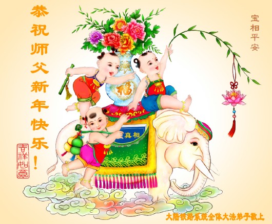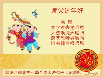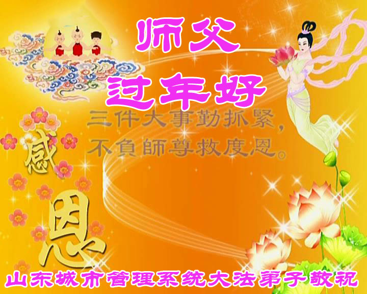 在新的一年里,我们要多学法,精進实修,做好师父要求我们做的三件事,随师父回家。 山东城市管理系统大法弟子恭祝慈悲伟大的师尊过年好!