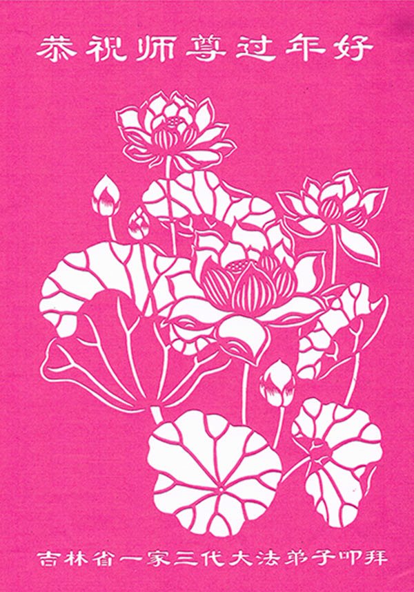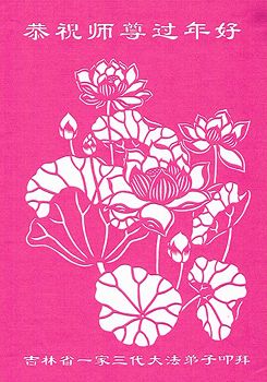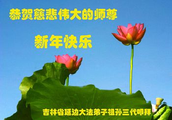 吉林省辽源市东丰县一家三口大法弟子恭祝师尊新年快乐! 修炼大法十八春, 新年来临想师尊, 恭祝师父新年好, 弟子谨记再精進。 吉林大法弟子跪拜恭祝慈悲伟大的师尊新年快乐!