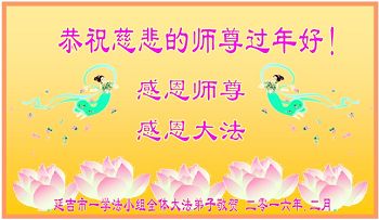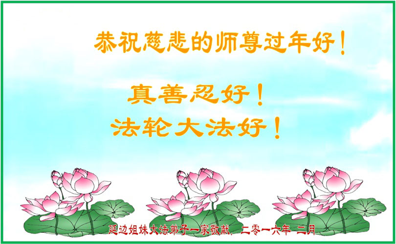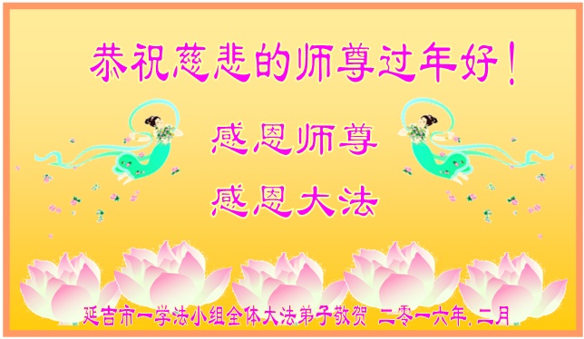【明慧网二零一六年二月五日】 吉林省延边州延吉市一学法小组全体大法弟子恭祝师尊新年快乐!