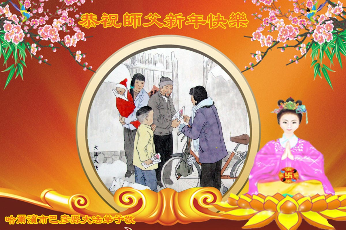 恭祝慈悲伟大的师尊新年快乐! 黑龙江省哈尔滨市巴彦县大法弟子祝师父新年快乐!
