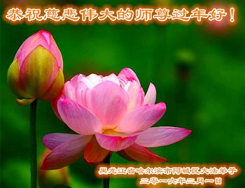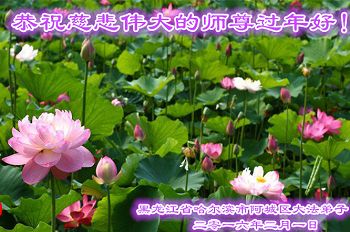 转眼又是一年,在师父巨大的承受和付出所延续来的一年中,很多弟子成熟了,弟子们感恩师父!在此弟子们恭祝师父过年好! 黑龙江省宾县全体大法弟子