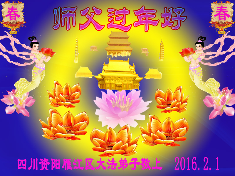 四川内江大法弟子恭祝慈悲伟大的师尊丙申年新年快乐!