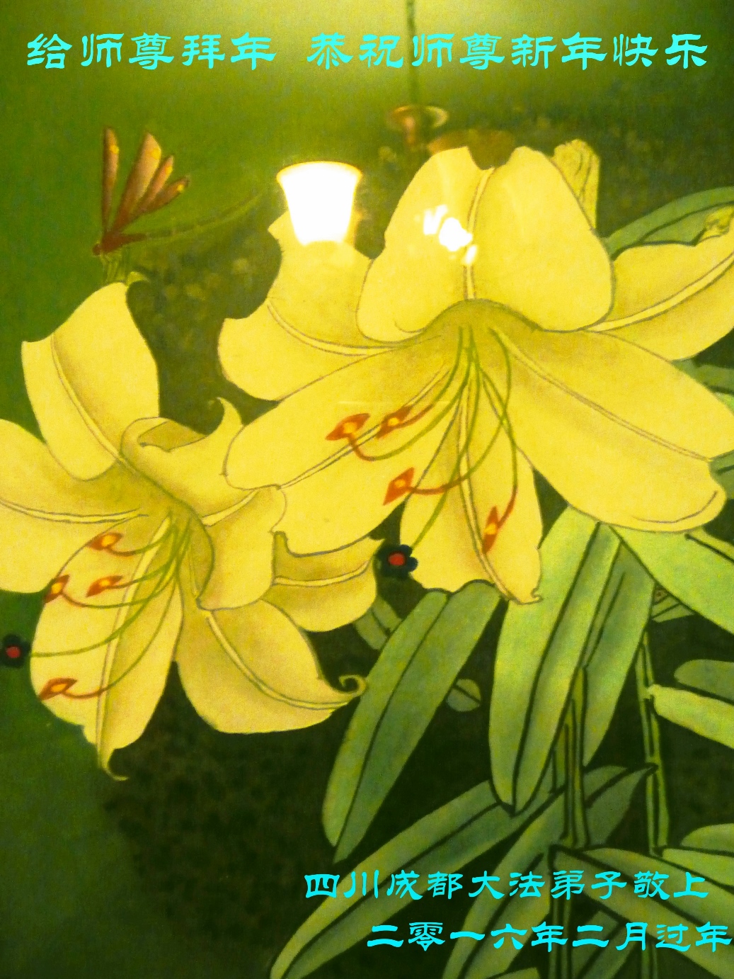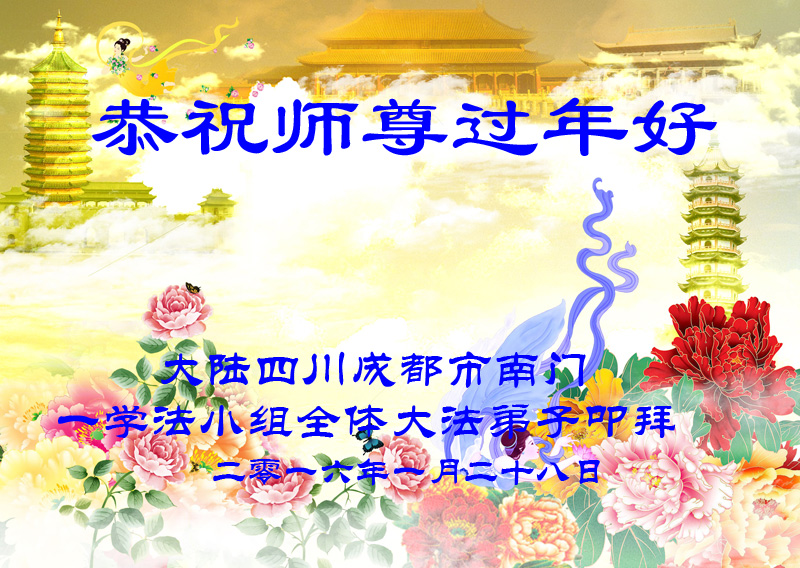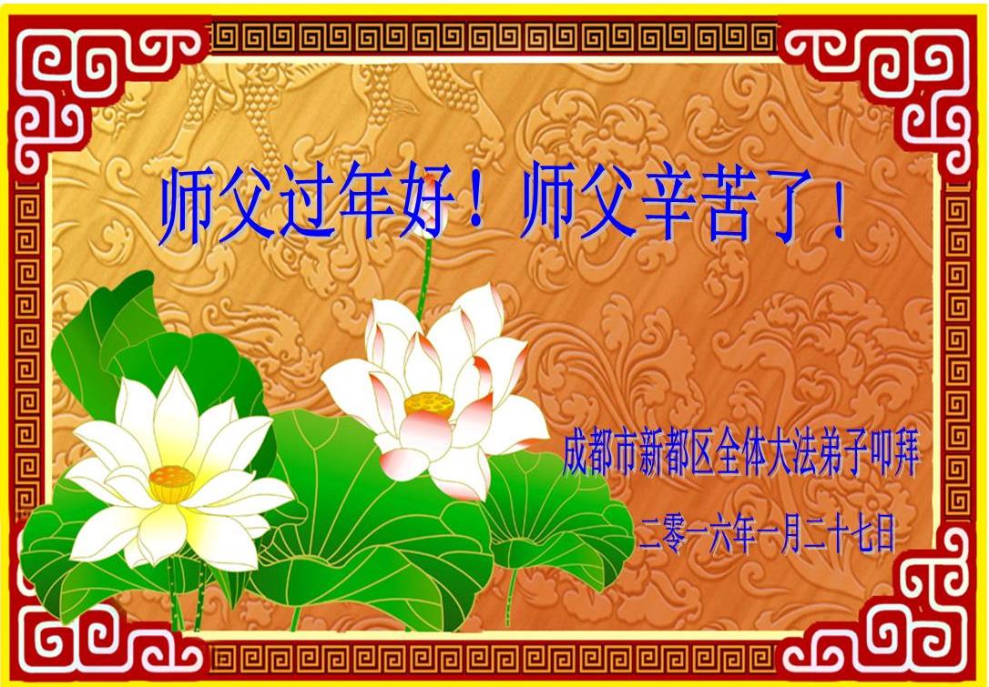 【明慧网二零一六年二月五日】 四川省成都市青白江区城厢镇全体大法弟子恭祝师尊过年好!
