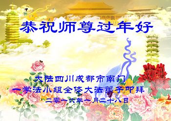 四川成都市南门一学法小组全体大法弟子恭祝师尊过年好!