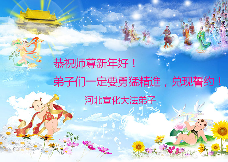宣化大法弟子想念师父!我们一定勇猛精進,做好三件事,修好自己,讲好真相,多救度众生!一定不辜负师尊的慈悲苦度! 河北邢台大法弟子恭祝师尊新年好!