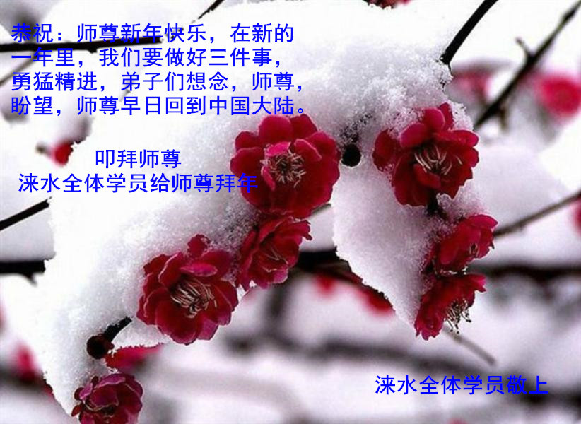每当新春佳节到来之际,弟子们就更加想念师父,弟子给师父磕头了!千言万语诉不尽弟子对师尊的感恩,在新的一年里,弟子要紧跟师尊的正法進程,弥补过去的不足,做好三件事,走好最后的助师正法之路。 河北衡水大法弟子恭祝师父新春快乐