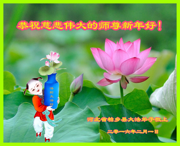 尊敬的师父:新年将至,邢台全体大法弟子给您拜年!恭祝师父新年好! 在新的一年里,我们更加精進实修,多救世人,愿师父多一份微笑,少一份操劳,这是我们全体大法弟子的心愿!师父,您辛苦了!请接受弟子深深一拜! 邢台全体大法弟子 2016年1月31日 河北邢台大法弟子给师尊拜年!师尊新年好!