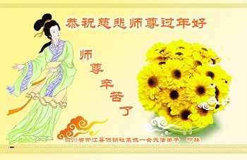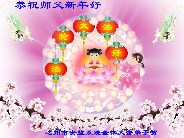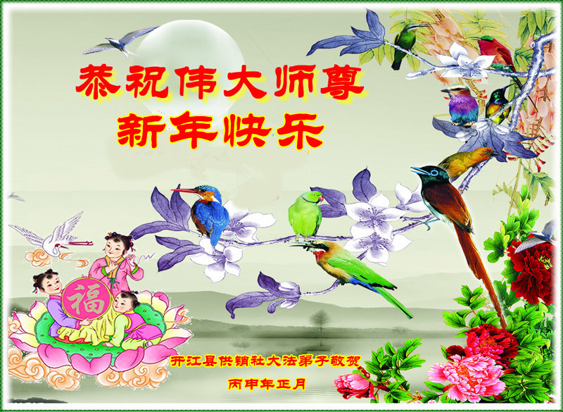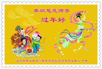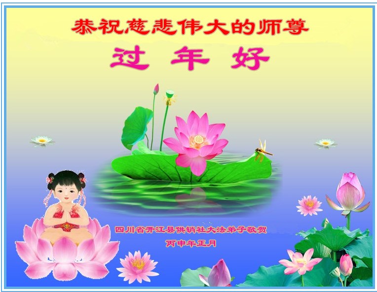 丙申新春之际,山东省淄博市临淄区和齐鲁石化地区众大法弟子向师父虔诚叩拜:恭祝慈悲伟大的师尊新春快乐!“师尊啊!师尊,新年好!千歌万曲唱不尽师恩浩荡!” 四川省达州市开江县商务局系统大法弟子恭祝慈悲的师尊新年快乐!