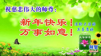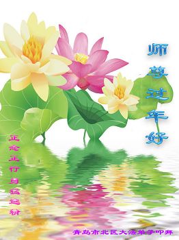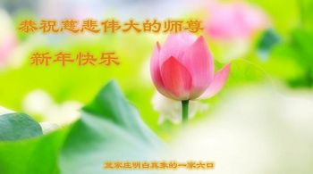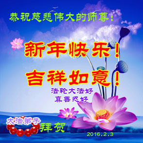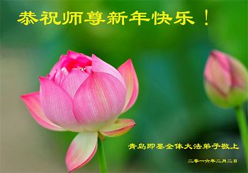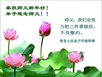 在新的一年里,我们学法小组,一定要做好三件事,救更多的人。盼师尊早日回大陆,我们想念您师尊。 山东省青岛市黄岛区青年大法弟子代表父母同修及家人恭祝师尊新年快乐!