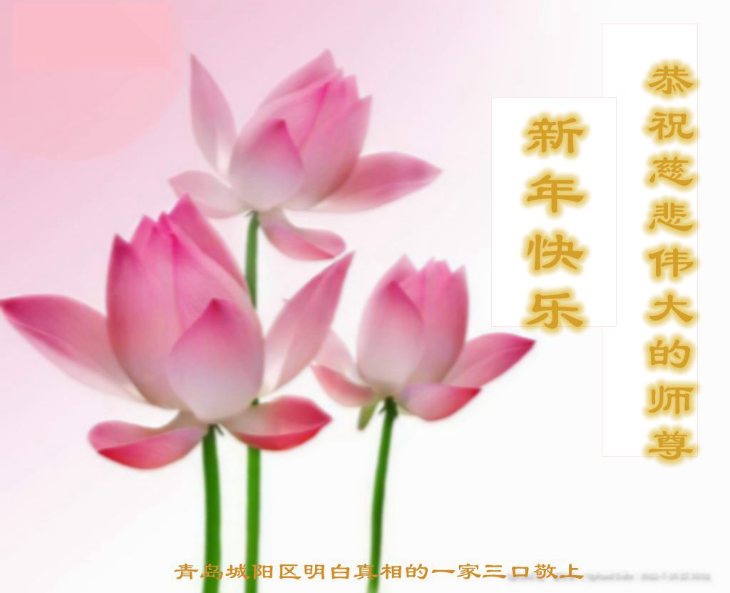 山东省青岛市城阳区大法弟子全家六名大法弟子感谢伟大的师尊慈悲苦度,以及相信法轮大法好得到福报的92岁老母亲,祝伟大的师尊新年快乐! 青岛城阳东西山社区大法弟子敬上 青岛城阳区大法弟子一家恭祝师尊新年快乐!