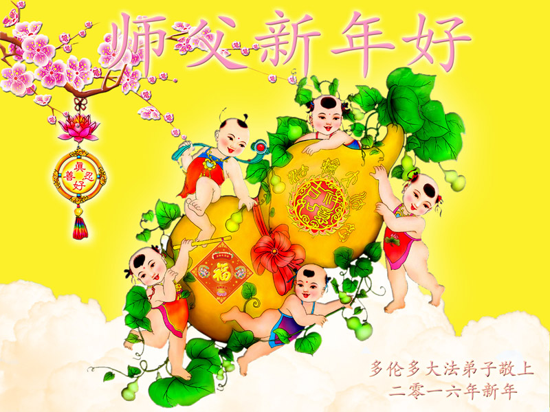 逢主洪恩把缘结 法中洗净圣莲开 千年再聚兑史约 汇成清流迎春来 多伦多大法弟子恭祝师尊新年快乐!