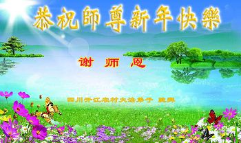 我是农村的一名大法弟子,我做的不好,不知如何表达,我只有代表我们村的大法弟子和我的家人感谢师父的慈悲呵护,恭祝师父新年快乐!我们一定跟师父回家。 黑龙江省哈尔滨市双城区农村大法弟子恭祝慈悲伟大的师尊新年好!