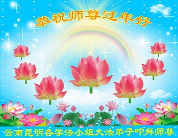 云南昆明全体大法弟子恭祝慈悲伟大的师尊新年快乐!