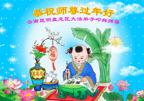 云南昆明盘龙区大法弟子恭祝师尊过年好!