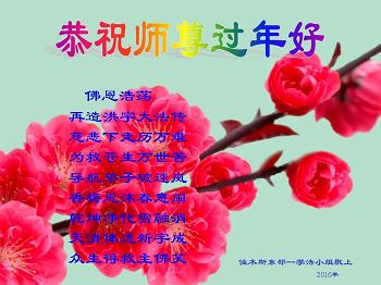 我和家人给您拜年了,弟子在新的一年里要做好三件事,修好自己、不让师父操心。弟子叩拜师尊。 大法弟子敬上