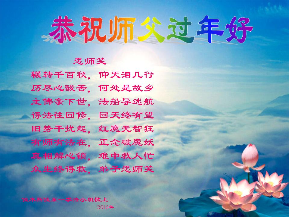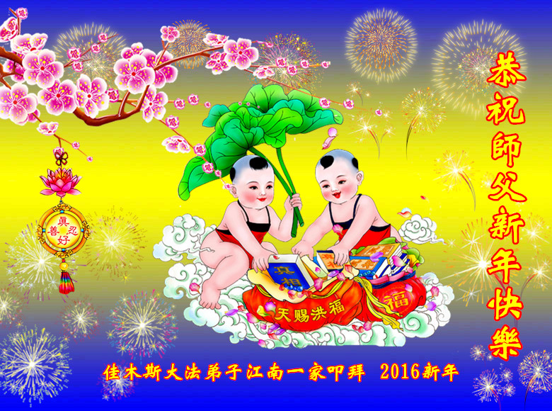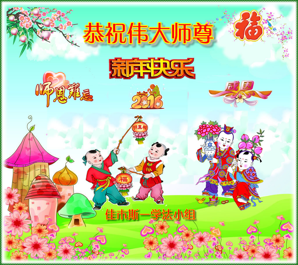 修炼大法 思想清纯 身体健康 焕然一新 感恩大法 感恩师尊 祝师快乐 叩拜师尊 人间小住 返本归真 三件大事 虔诚用心 真善忍好 最高标准 兑现誓约 圆满成真 佳木斯大法弟子 2016新年 黑龙江佳木斯一大法弟子全家叩拜!恭祝师父新年快乐!