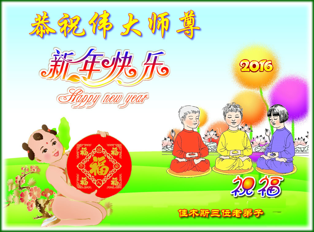 师父新年好!师父新年好!师父新年好! 黑龙江省佳木斯三位大法弟子恭祝伟大师尊新年快乐!