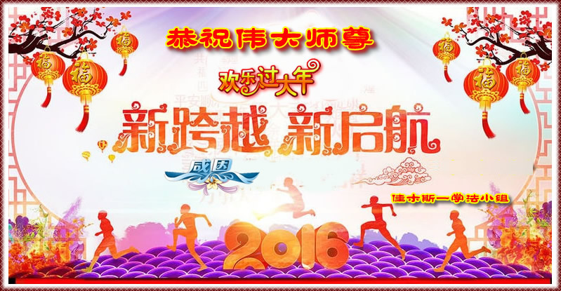 我们小组 携手共進 整体提高 正法紧跟 跨越启航 助师救人 兑现誓约 圆满成神 佳木斯一学法小组 2016新年 黑龙江省佳木斯一学法小组大法弟子恭祝伟大师尊新年快乐!