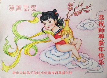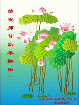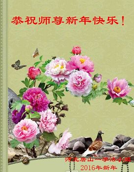 师父过年好!师父辛苦了!我们知道大法弟子肩负的历史责任,我们是历史上的特殊生命,是众生得救的唯一希望。 在法正人间越来越近的时刻,在归期不远的短暂日子里,我们更珍惜与师同在的幸福圣缘、更珍惜大法弟子相聚一起的可贵时光。我们会走好最后的路。谢谢师父! 梅开柳绽又一年, 天地开了新篇, 诉江大潮波澜涌, 蛤蟆虾蟹一锅鲜。 弟子合十跪师前, 含泪给师拜年, 浩荡师恩无言表, 唯有精進记心间。 修炼如初快步跑, 珍惜师徒圣缘, 修心救人了洪愿, 一定随师回家园。 唐山市丰润区大法弟子跪敬 2016年1月19日 河北唐山一学法小组大法弟子恭祝最伟大的师尊新年好!