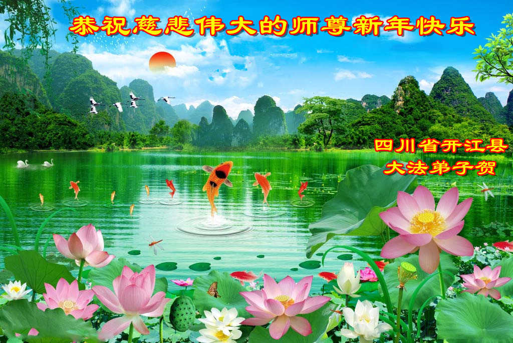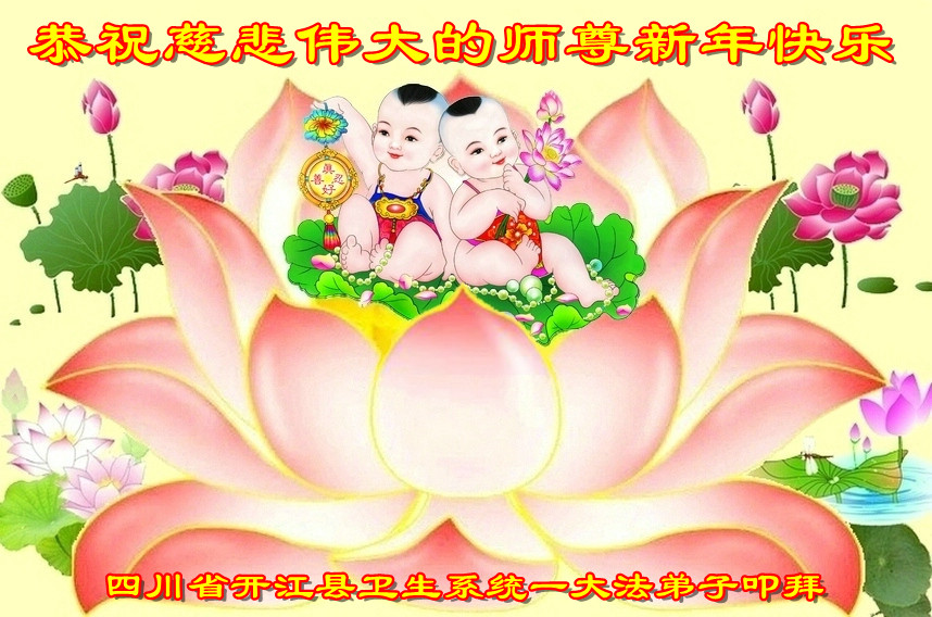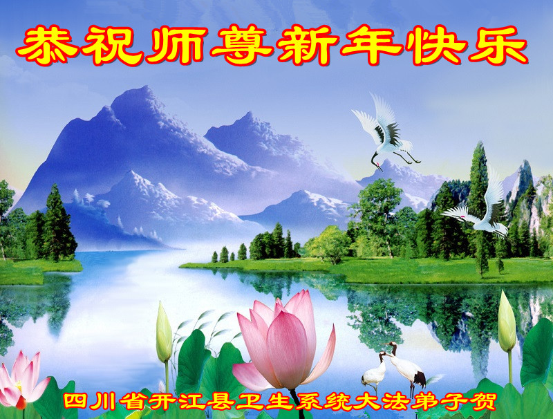 四川省达州市开江县卫生系统一大法弟子恭祝慈悲伟大的师尊新年快乐!