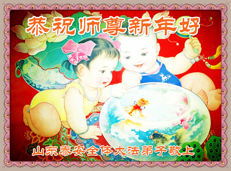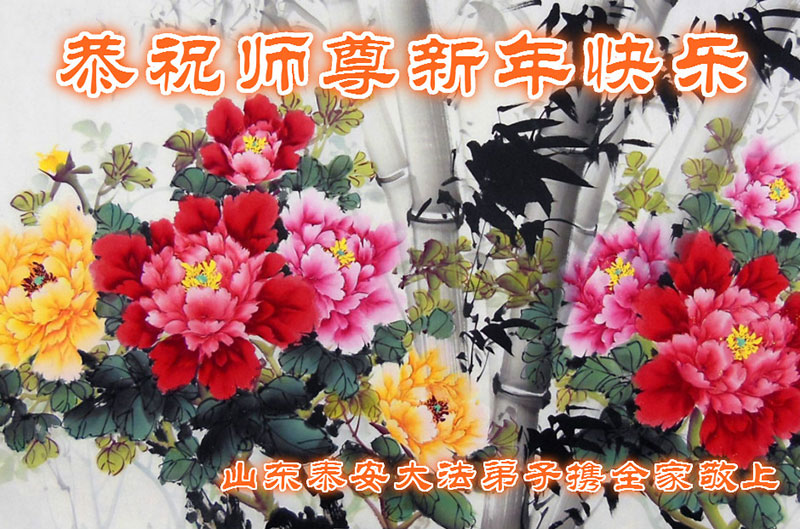 山东泰安大法弟子携全家恭祝师尊新年快乐!