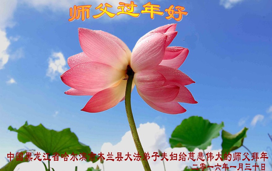 黑龙江省哈尔滨市木兰县大法弟子夫妇恭祝师父过年好!