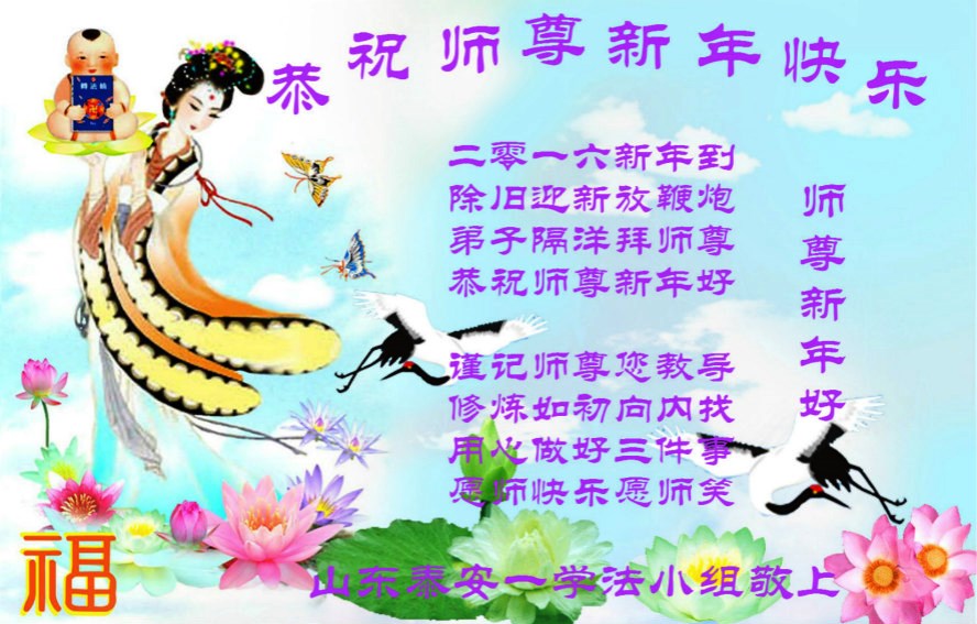 山东泰安一学法小组大法弟子恭祝师尊新年快乐!
