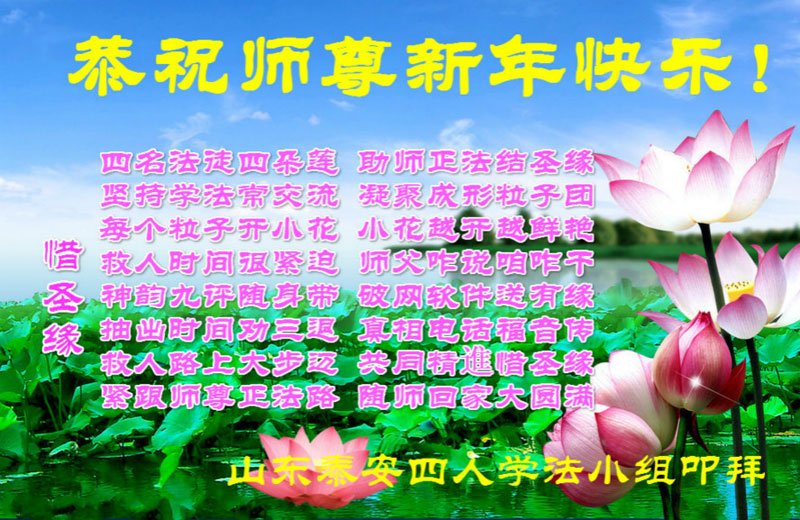 山东泰安四人学法小组大法弟子恭祝师尊新年快乐!