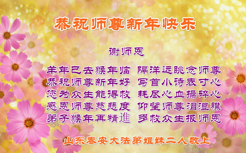 山东泰安大法弟子姐妹二人恭祝师尊新年快乐!
