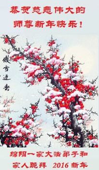 慈悲伟大的师父好!弟子决心在二零一六年迎头赶上,多学法,多救人,做好三件事,一思一念在法上。 山东烟台市龙口市一大法弟子遥祝师父过年好!