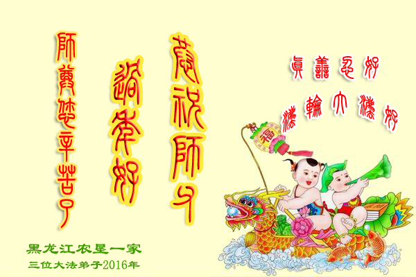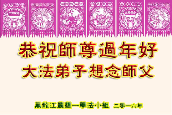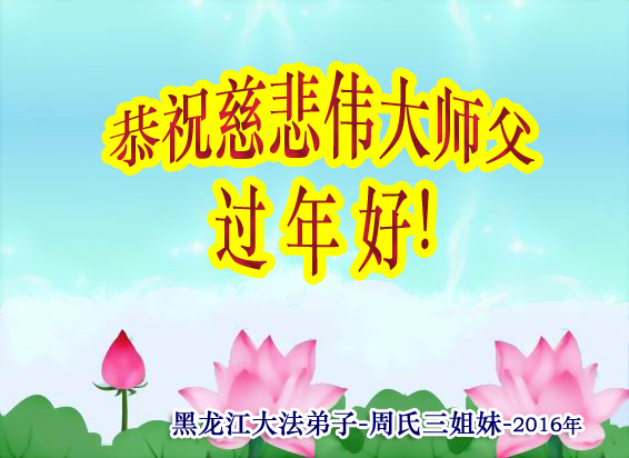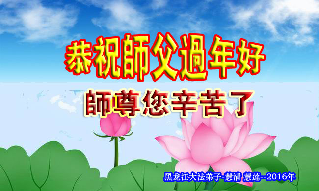 【明慧网二零一六年二月七日】 黑龙江大法弟子法莲与丈夫恭祝慈悲伟大的师尊过年好!师父辛苦了!