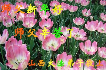又到了和家团圆的新年,又到了辞旧迎新的大年夜,我们亿万弟子想念您,三百六十五天沐浴在您的佛光里,才迎来这充满喜悦的新年,一年复一年您为众生操尽了心,才迎来这苍宇再造的除夕夜,师尊啊!师尊!新年好,千歌万曲唱不尽师恩浩荡,新年弟子更精進,唯愿师尊笑。唯愿师尊笑。师父您好!您辛苦了,在这新年到来之际,我们十人学法小组全体大法弟子想念您,敬拜师尊,感念师恩!我们无法用语言表达师尊的救度之恩,我们要珍惜师父用自己的痛苦承受来延续着的每一天,我们在新的一年里会更加精進,多学法、学好法、明法理。时时用法来纯净自己,放下一切人心与观念,积极参与诉江,做好三件事,抓紧时间救人,不辜负师父的期望,完成史前誓约,圆满随师还。 山西省太原反迫害营救项目小组大法弟子祝伟大的师尊新年快乐!