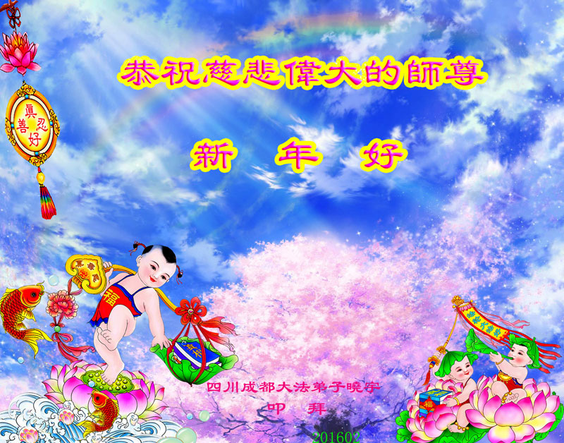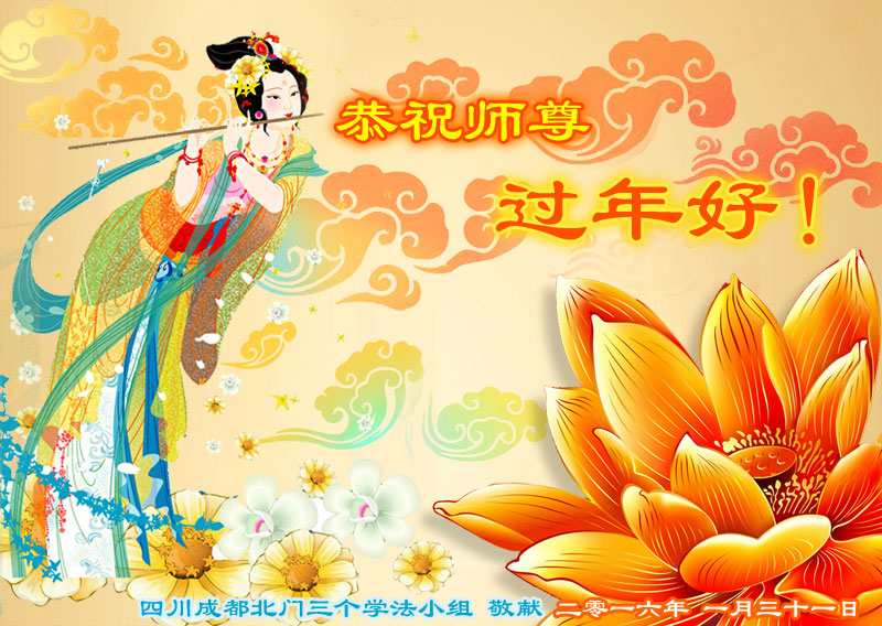 【明慧网二零一六年二月七日】 四川省成都一学法小组大法弟子恭祝师父新年好