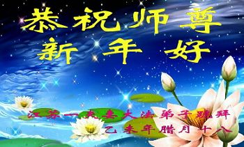 师尊创世下凡尘 广传大法真善忍 慈悲救度知多少 法轮转动新宇成 江苏省大专院校大法弟子恭祝师尊新年快乐!