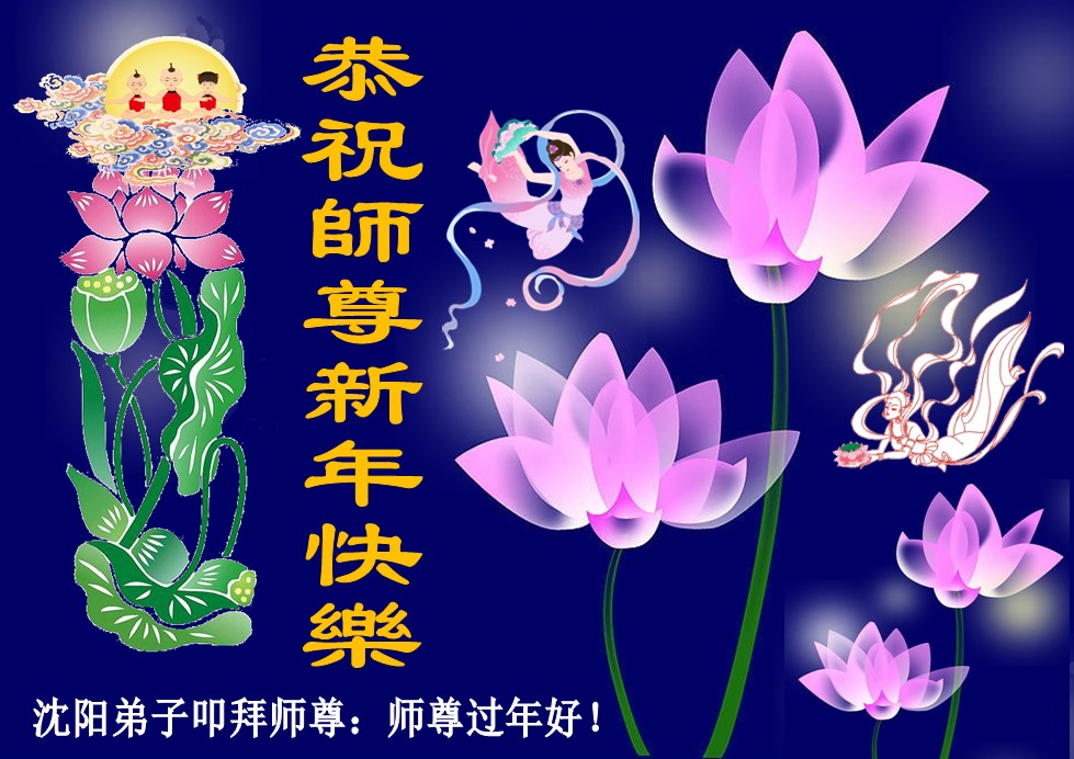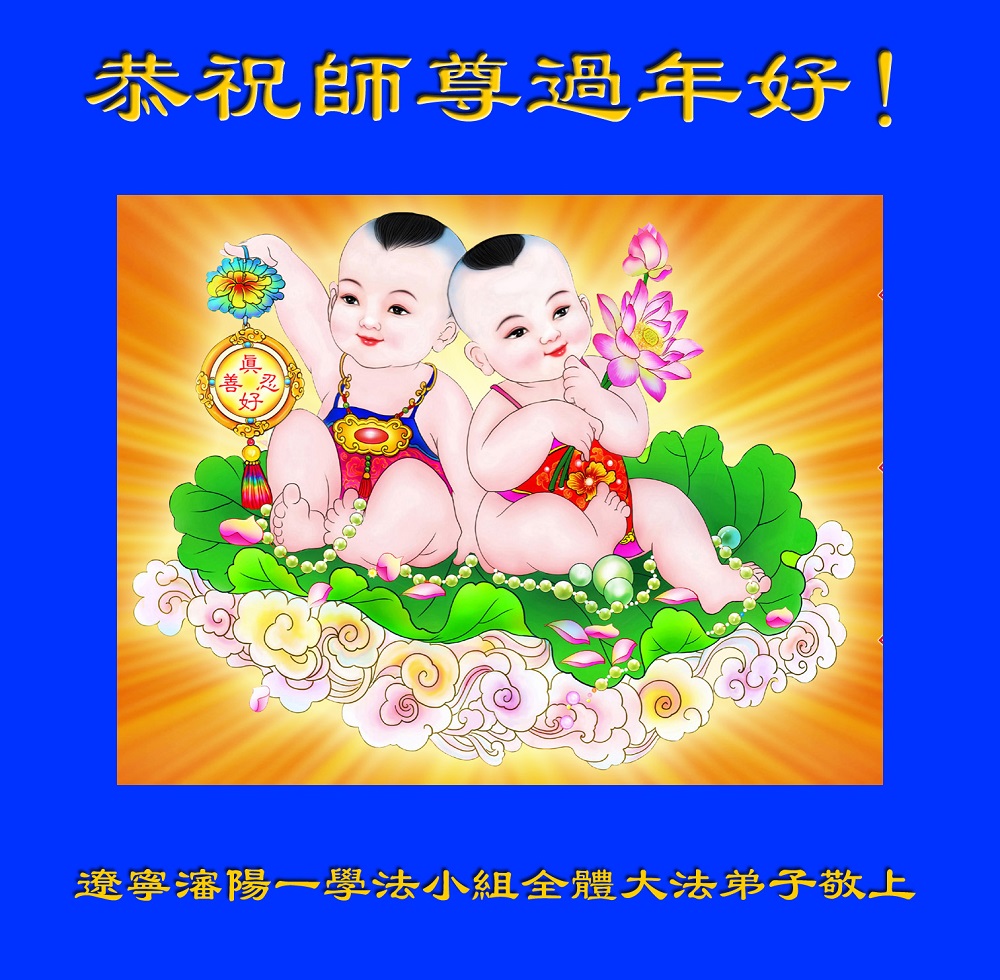 师尊过年好! 辞旧迎新,正法又一年,弟子在师尊的慈悲呵护下,紧跟正法進程,兑现史前誓约,精進做好三件事,慈悲救众生,决不辜负师父的慈悲苦度。在正法的最后时刻,走好走正正法修炼路,把迫害大法、迫害大法弟子的元凶江泽民绳之以法,还师父清白,还法轮大法清白,让世人都明真相,都得救。 沈阳市大法弟子跪拜师尊! 辽宁沈阳一学法小组大法弟子给师父拜年,恭祝慈悲伟大的师父新年好!新年快乐!