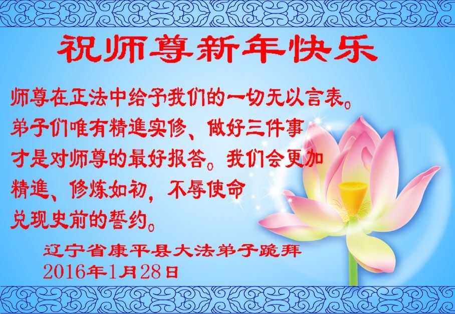 【明慧网二零一六年二月七日】 辽宁沈阳大法弟子恭祝师尊新年好!