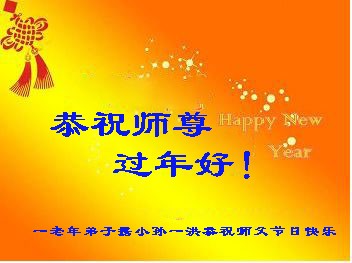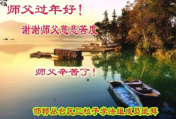 愿弟子们新年添正念,不负众望,少让师父操劳,多让师父欣慰。谨记做好三件事、谨记、谨记! 弟子叩拜师父过年好! 河北省衡水市阜城县大法弟子恭祝师尊新年快乐!