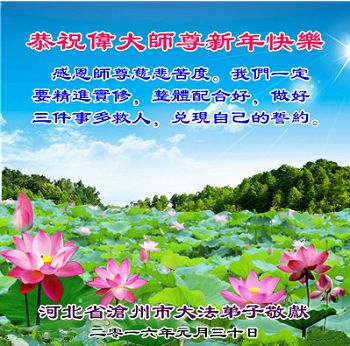【明慧网二零一六年二月七日】 河北邯郸丛台区大法弟子恭祝师父新年好!