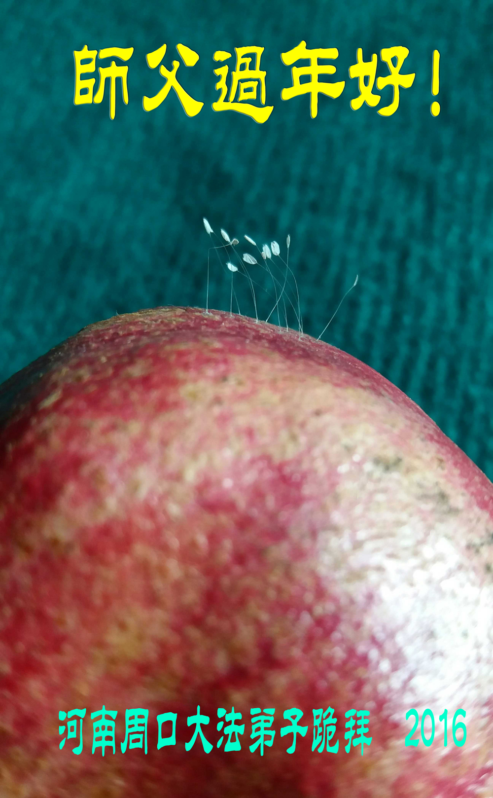 2016年新年即将来临,河南省安阳县全体大法弟子恭祝师尊新年快乐!向师尊叩拜!在这辞旧迎新之际,感恩伟大的师尊慈悲苦度。在新的一年里,我们要加倍努力学好法,珍惜时间做好“三件事”,向内找,配合好整体提高,紧跟师尊正法進程,不负使命随师尊回家。 河南省安阳县学法小组全体大法弟子 河南周口全体大法弟子向伟大慈悲的师尊跪拜:师尊您辛苦了!
