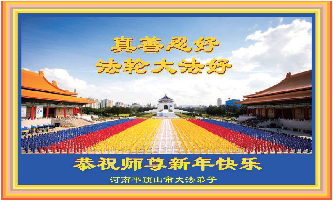 请师父放心!我们淮阳全体大法弟子一定做好三件事!完成下世时承担的历史使命! 河南省淮阳县全体大法弟子敬上 河南平顶山大法弟子恭祝师尊新年快乐!