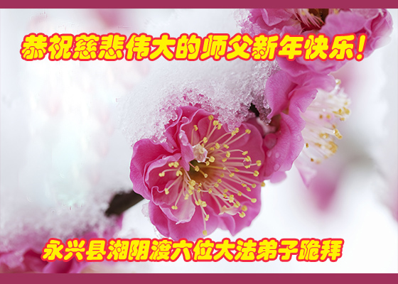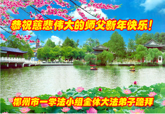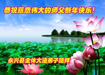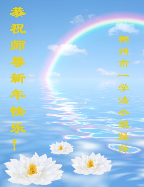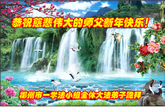 师父啊!慈悲伟大的师父啊!是您,将我身患多种疾病的身体净化了,让我感受到无病一身轻的幸福滋味。最后我们就遥贺师父新年快乐! 湖南省郴州市一学法小组全体大法弟子恭贺慈悲伟大的师父新年快乐!
