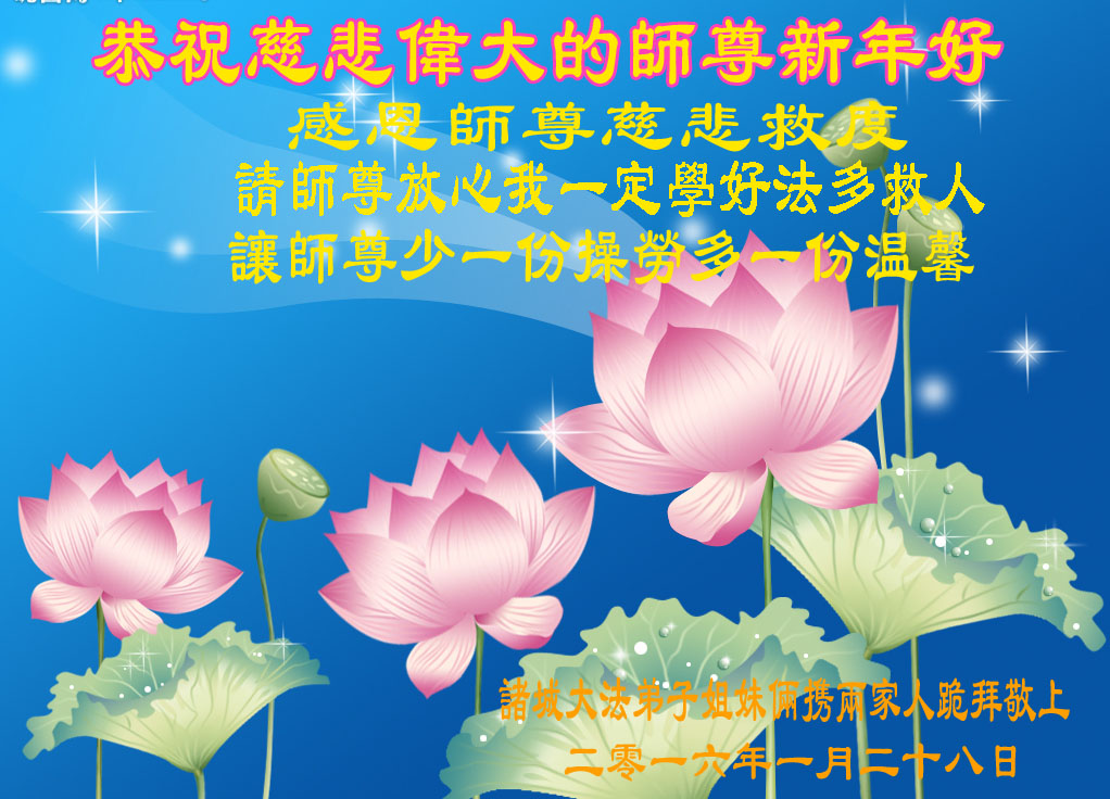 【明慧网二零一六年二月七日】 山东潍坊大法弟子恭祝师父新春快乐!