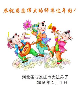 【明慧网二零一六年二月七日】 河北省石家庄一家六口大法弟子祝师父新年快乐!
