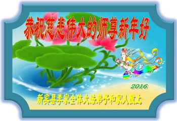 辽宁抚顺新宾县李家全体大法弟子和家人恭祝慈悲伟大的师尊新年好!