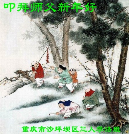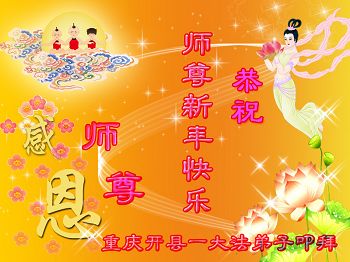 又是新的一年来到了,在过去的一年里师尊辛苦了。潼南县一家四个大法弟子在新年到来之际给师尊拜年了:师尊新年好!弟子们在新的一年一定会做好三件事,兑现自己的誓约,不辜负师尊对弟子的厚望。 再次恭祝师尊新年快乐! 合十。 重庆市潼南县大法弟子 重庆永川区全体大法弟子恭祝慈悲伟大的师父新年快乐!