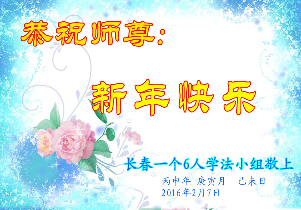 【明慧网二零一六年二月七日】 吉林省长春市榆树市全体大法弟子恭祝师尊过年好!