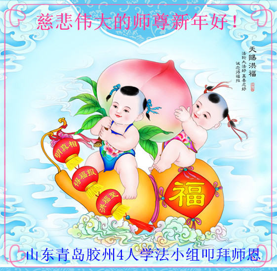 山东省青岛市市北区大法弟子恭祝慈悲伟大的师尊新年好!新年快乐! 山东省青岛市胶州市一学法小组全体大法弟子恭祝慈悲伟大的师父过年好!