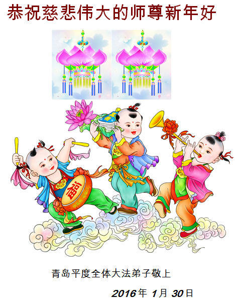 【明慧网二零一六年二月七日】 山东省青岛市平度市全体大法弟子恭祝慈悲伟大的师尊新年好!