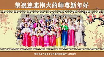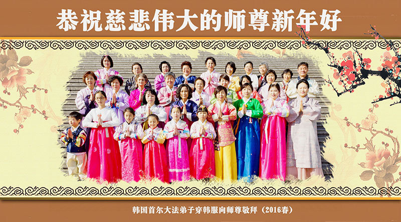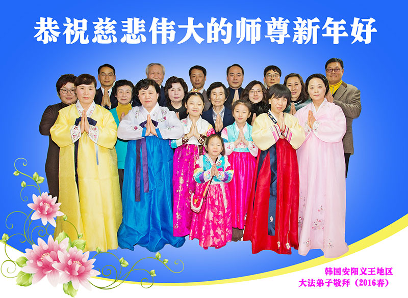 二零一六年丙申年敬拜! 住在韩国的延边大法弟子给师尊拜年!恭祝师尊过年好!