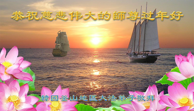 韩国釜山地区大法弟子恭祝慈悲伟大的师尊新年好!